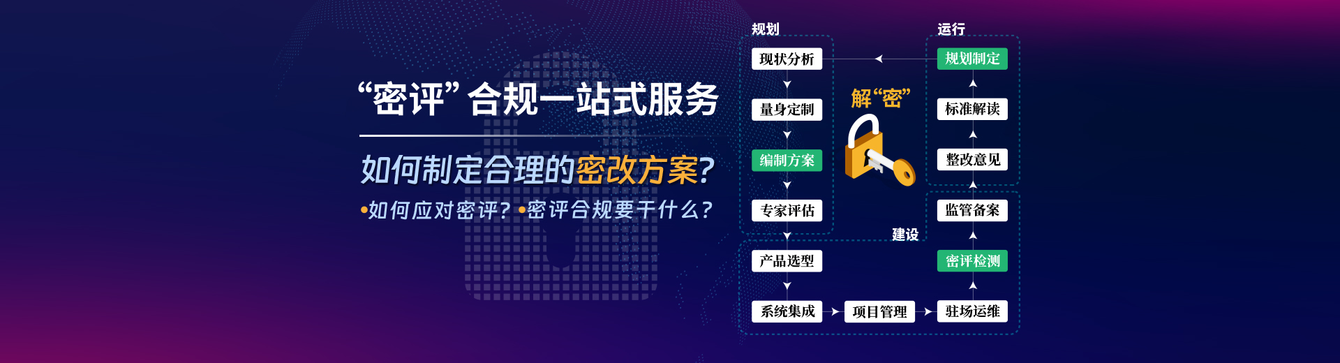 為客戶提供個性化、專業(yè)性的,符合相關(guān)規(guī)定要求的,全流程——密碼技術(shù)解決方案。